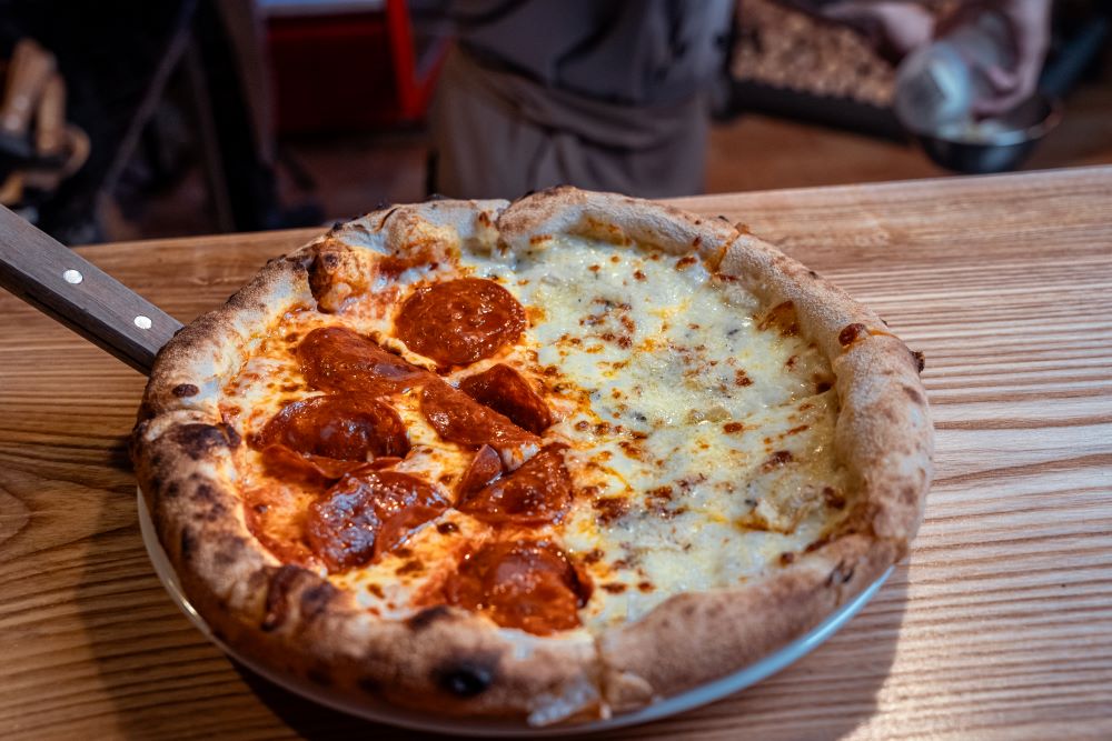 To enjoy two different Pizza flavors on the same pie, you can order Half & Half for each different flavor for each side of Pizza. It’s a fantastic option for those who want to explore various flavors in one meal.