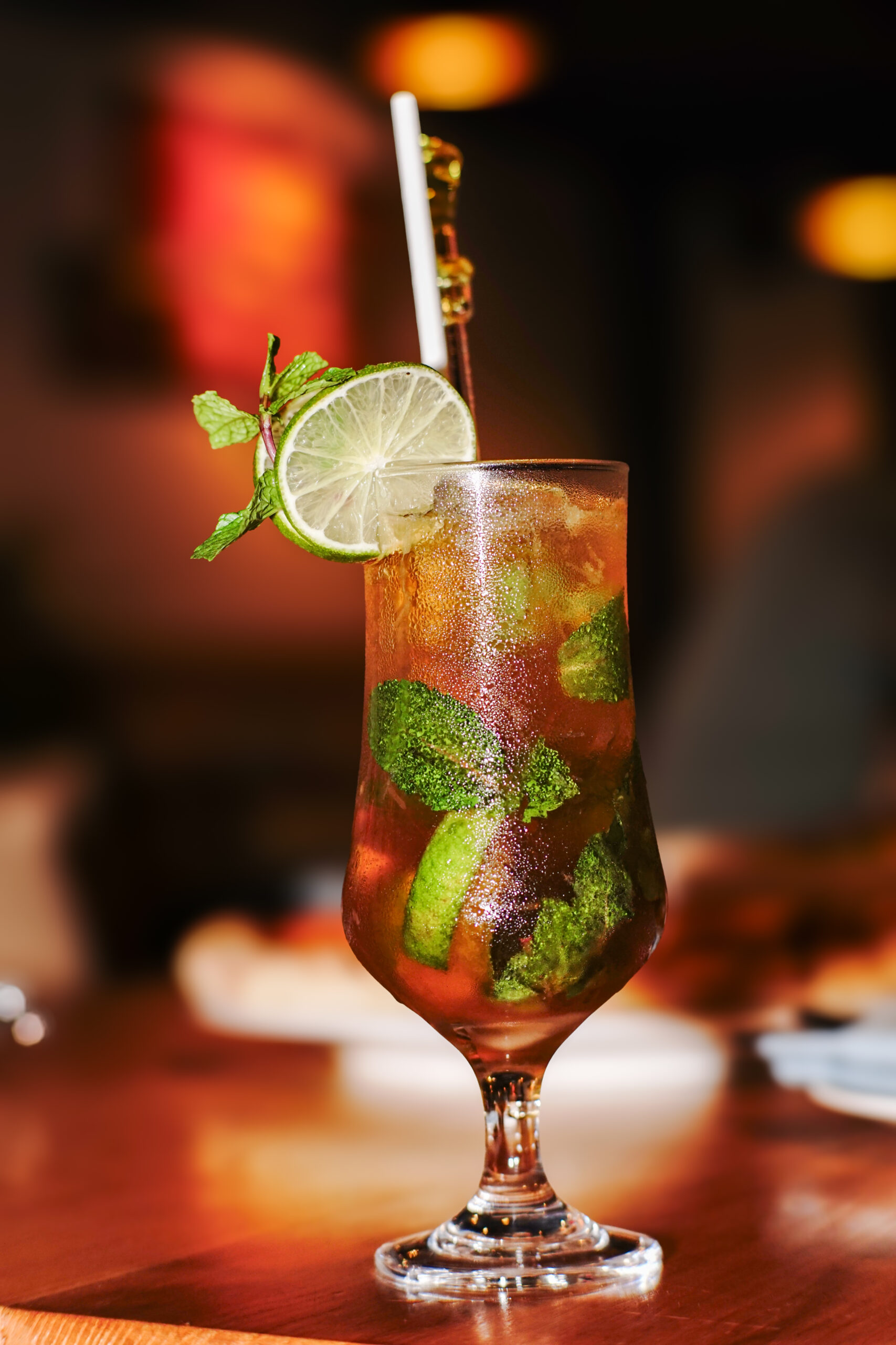 Rượu rum Bacardi nhẹ, nước cốt chanh, đường nâu, bạc hà, soda